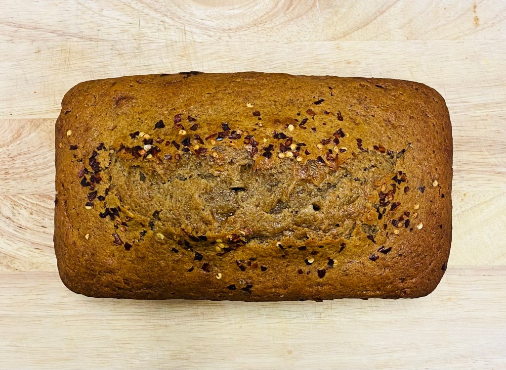I really experimented with this one here. I have a decent spice tolerance and I decided to put that to the test by increasing the amount of spices to get a sense of what this bread would taste like. I wondered at what spice level would I no longer be able to get the banana bread taste. Eventually, I landed on a recipe that still achieves the goal of tasting like a banana bread but with a little bit of a kick.